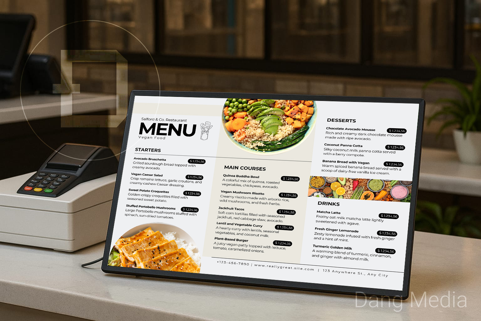 – Mỏng, tiện lợi – Đặt ngay cạnh Kasse – Khách dễ dàng đặt và thanh toán – Thay đổi menu đơn giản